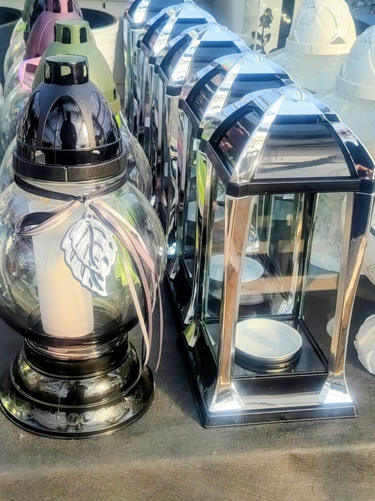 W naszym Centrum Ogrodniczym znajdziecie duży wybór zniczy, lampionów i wkładów – klasycznych i dekoracyjnych.